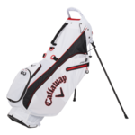 Callaway Chev Stand Bag A sleek and versatile midsized stand bag, the Chev features bold graphics, ample storage and 4-way club organization at a great value. This 5 pound bag features: a midsized 4-way top with full-length dividers, an insulated water bottle pocket, and a large apparel pocket, hook and loop glove attachment, rain hood, and 6 pockets including a velour-lined valuables pocket.SpecificationsColor: Charcoal/Fire Red ... View Details » |